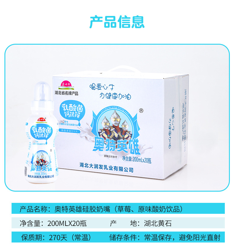 Aote Yingxiong strawberry, primary flavor sour milk 1*20*200ml Children yoghurt series